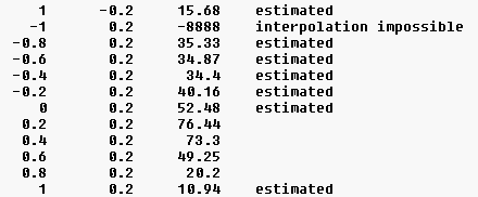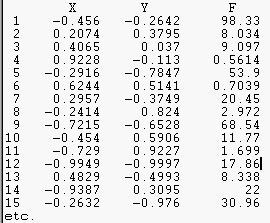 Für jeden Datenpunkt muß eine Zeile mit jeweils drei Werten für X,Y und F eingelesen werden: