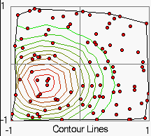 Die Anzahl der Isolinien und die Farben der maximalen und der minimalen Isolinie können beliebig festgelegt werden. Zur Farbänderung klicken Sie auf das entsprechende Zahlenfeld.